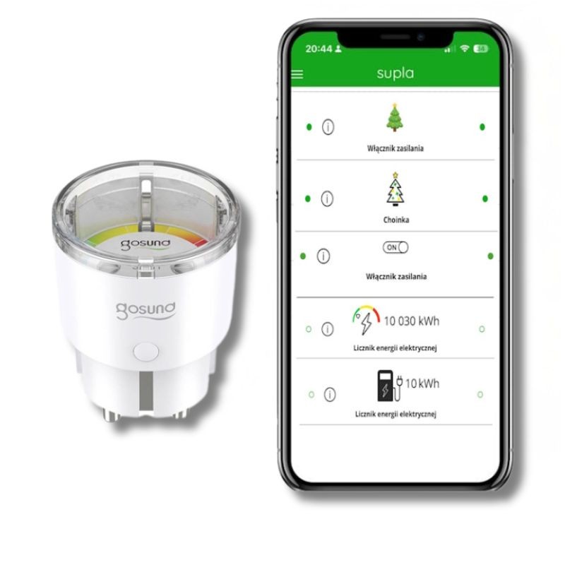 Inteligentne gniazdko Gosund SP111 o mocy maksymalnej 3680W (16A) z profesjonalnie wgranym oprogramowaniem SUPLA oraz przeprowadzoną usługą kalibracji licznika energii. Urządzenie umożliwia zdalne sterowanie sprzętami domowymi, precyzyjny monitoring zużycia prądu oraz tworzenie zaawansowanych scenariuszy automatyzacji, w tym ochrony przed zbyt wysokim napięciem w sieci.