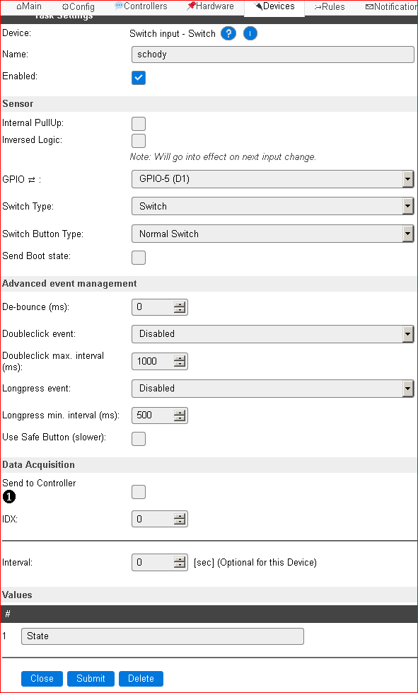Przełączanie stanu GPIO-5 odbywa się lokalnie w ramach modułu ESPEASY.