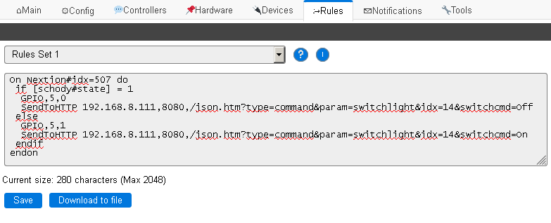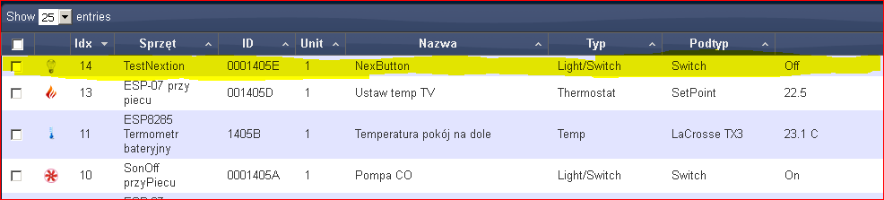 Od tego momentu możemy sterować światłem zarówno z poziomu wyświetlacza NEXTION jak i z poziomu Domoticza.