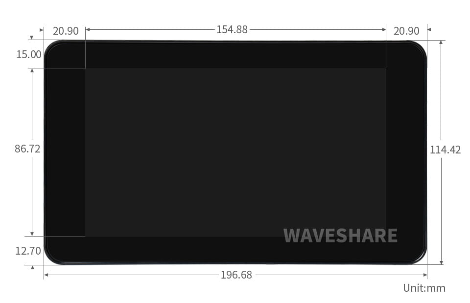 7palcový kapacitní dotykový displej pro Raspberry Pi, rozhraní DSI, 1024×600 v ochranném pouzdře