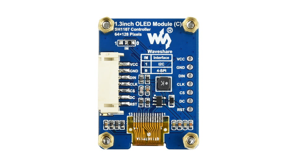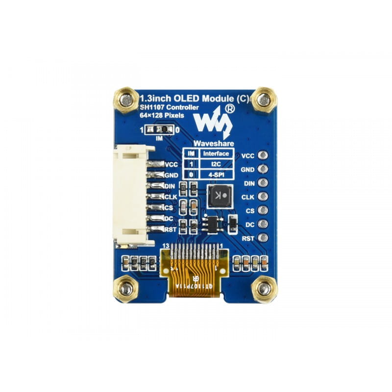 1,3" displej OLED s rozlišením 64×128, barva: bílá. Podporováno přes SPI/I2C řadičem SH1107.