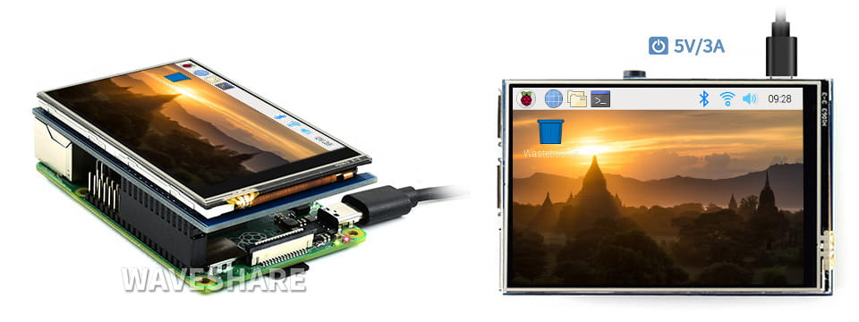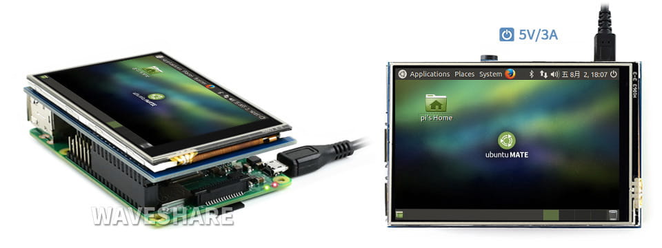 3,5" IPS LCD displej s odporovým dotykovým panelem, kompatibilní s libovolnou verzí Raspberry Pi.