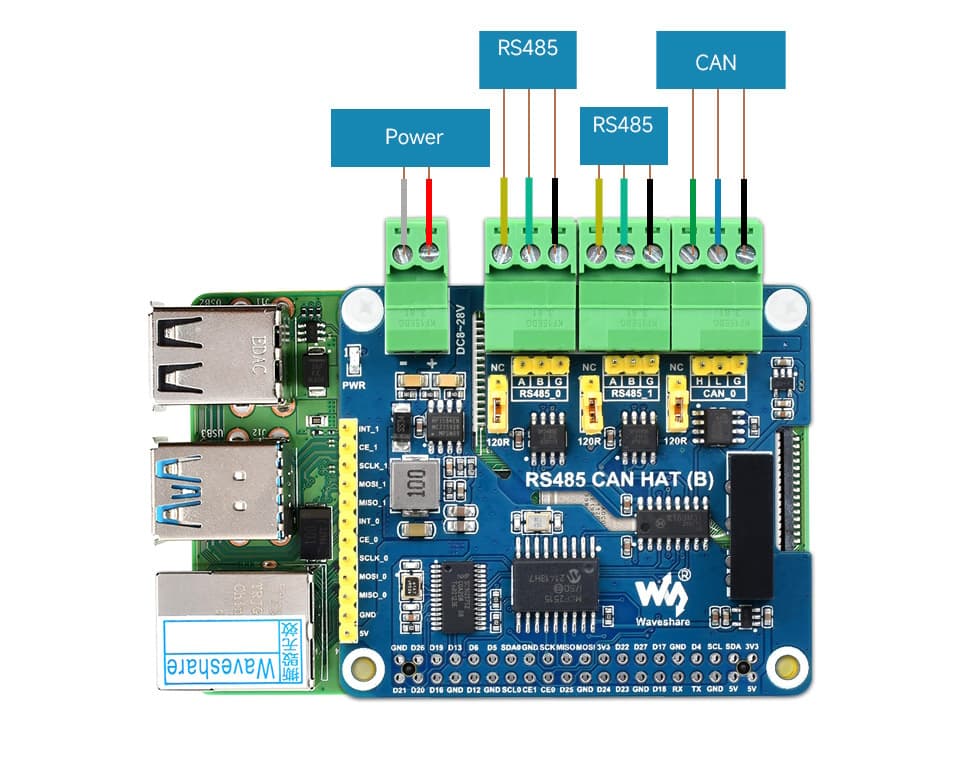DC 8~28V, může napájet HAT a Raspberry Pi - Rozhraní sběrnice RS485