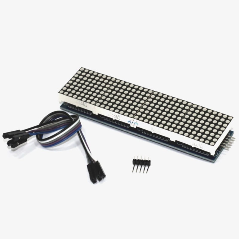 Modul LED martingale sestávající ze 4 modulů LED 8x8, z nichž každý je řízen jedním čipem MAX7219. Martyce lze spojit do série a vytvořit tak větší moduly.