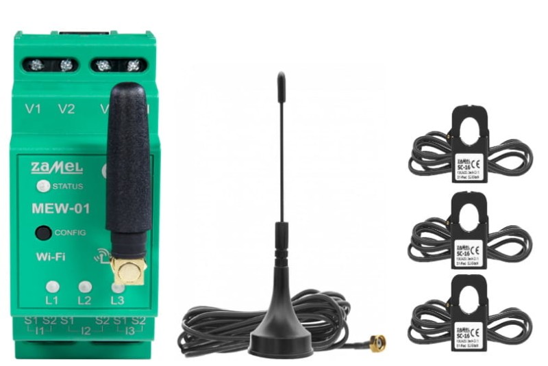Zařízení MEW-01 pro měření spotřeby elektrické energie a proudu, napětí, výkonu na 3 fázích a dálkový odečet přes Wi-Fi.