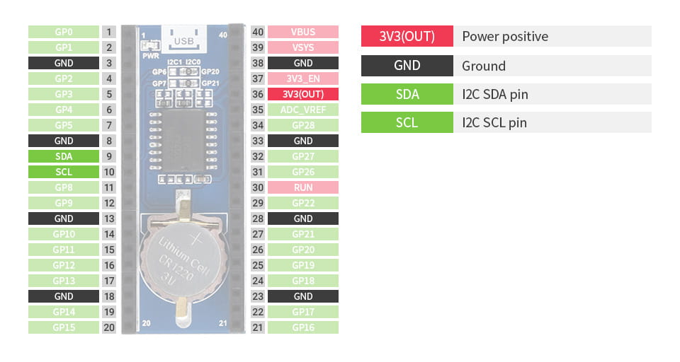 - Standardní konektor kompatibilní s Raspberry Pi Pico, podporuje řadu Raspberry Pi Pico .