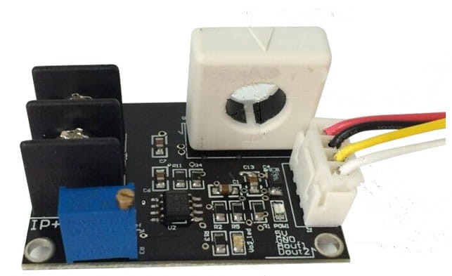 Modul s čipem WCS1500 pro bezkontaktní měření stejnosměrného a střídavého proudu. Čip WCS1500 využívá k měření Hallův jev.