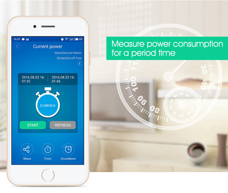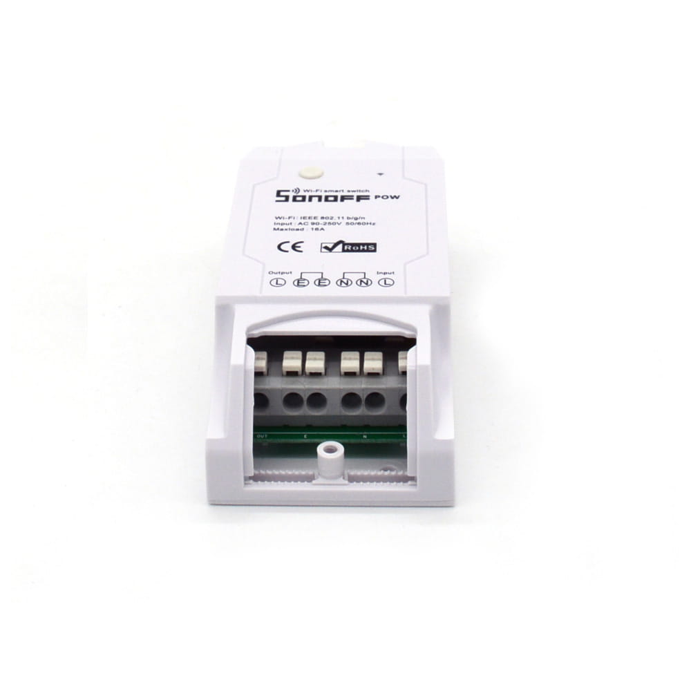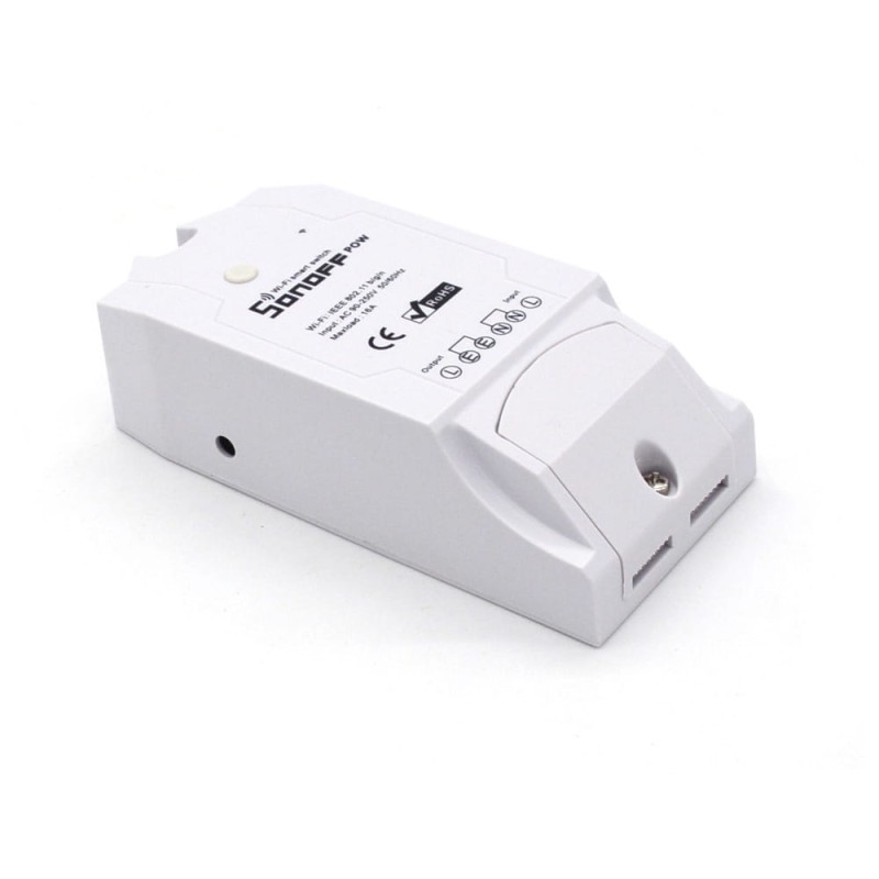 Sonoff Pow - modul sloužící k měření spotřeby energie elektrického spotřebiče, pomocí aplikace, která se k zařízení připojuje přes WiFi, máme možnost: zapínat a vypínat zátěž a také zobrazit zprávu o spotřebě energie v kWh za určité časové období.