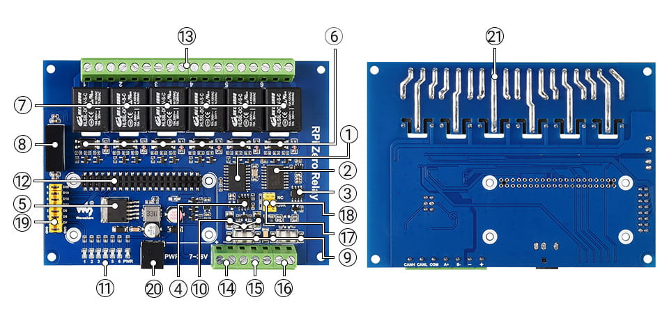 Průmyslový 6kanálový reléový modul RS485/CAN pro Raspberry Pi Zero
