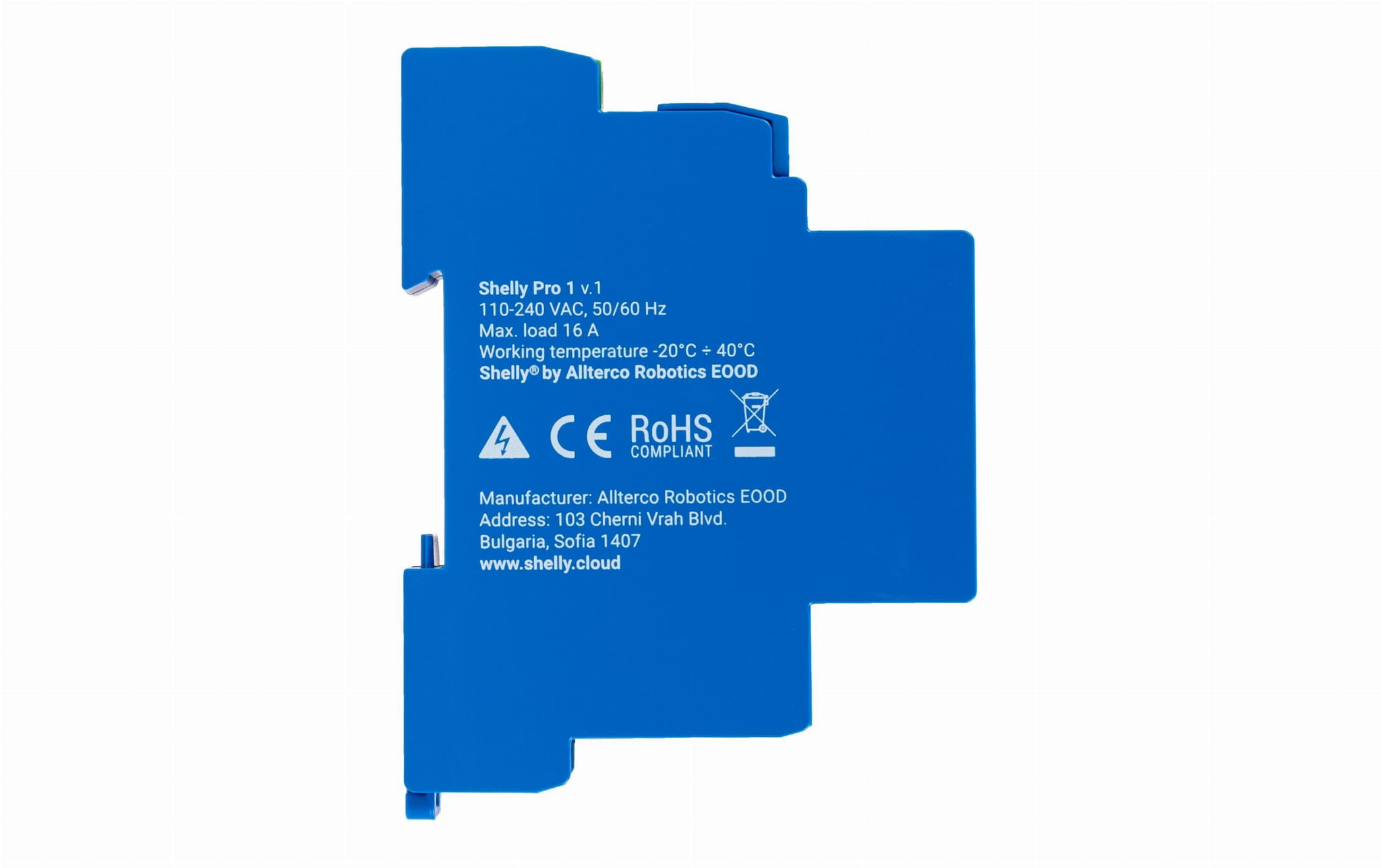 .Shelly Pro 1 je jednokanálové relé pro montáž na sběrnici DIN. Modul je vybaven připojením Wi-Fi, LAN a Bluetooth, což z něj činí univerzální relé vhodné pro automatizaci domácností a budov s dálkovým ovládáním. Zařízení Shelly Pro Line lze ovládat přímo a prostřednictvím chytrého telefonu pomocí aplikace Shelly Cloud.