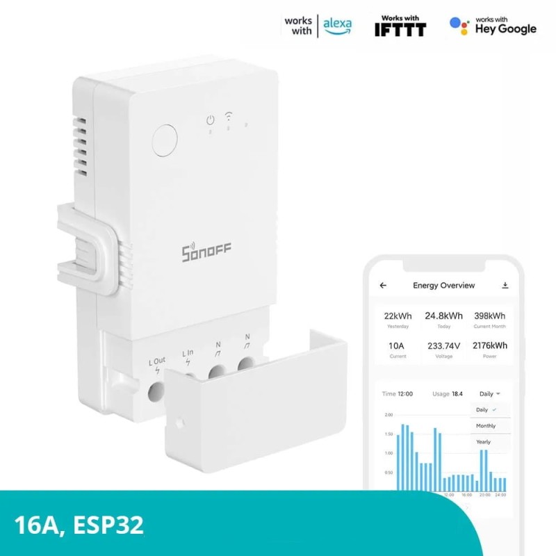 Sonoff POWR316 Origin Wifi relé s funkcí měření výkonu přijímače, které funguje jako elektroměr s internetovým přístupem k měření.
