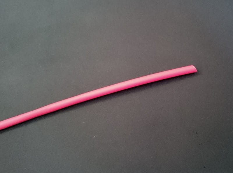 Smršťovací pouzdro červené barvy o průměru 2,5 mm po smrštění 1,25 mm.
