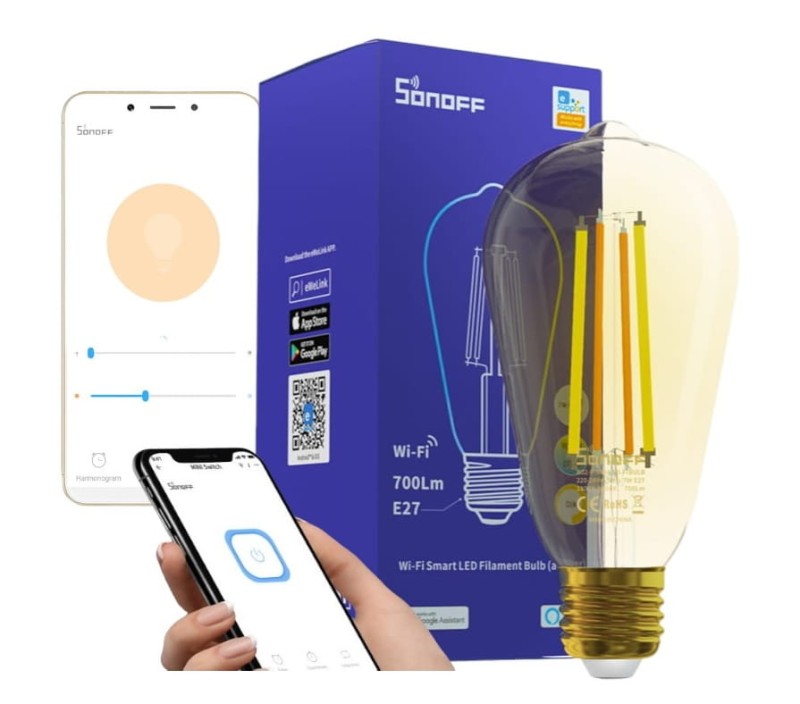 WiFI LED vlákno ST64 E27 Sonoff B02-F-ST64 žárovka