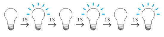 Pro tento účel několikrát zapněte a vypněte světlo v intervalu 1 s, jak je uvedeno níže.