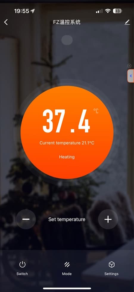 Dálkový přístup k aktuální teplotě a nastavení vytápění nebo chlazení je možný prostřednictvím aplikace Tuya, která běží na chytrých telefonech se systémy Android a iOS. Termostat se připojuje k internetu prostřednictvím sítě WiFi 2,4 GHz, odpojení od sítě WiFi nepřeruší provoz termostatu.