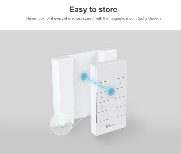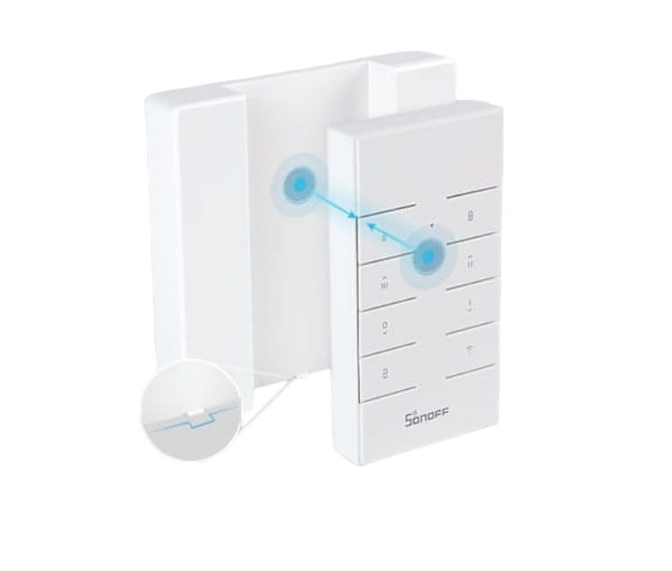 Základna pro 8kanálový dálkový ovladač SONOFF RM433. Podstavec můžete snadno připevnit na zeď pomocí oboustranné pásky nebo šroubů, které jsou součástí sady.