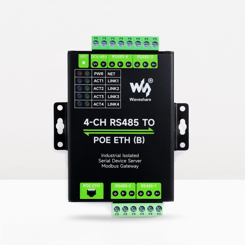 4-CH RS485 zu POE ETH (B) ist ein hochfunktionales IoT-Gateway, das als Datenakquisitionsgerät dient und mit vier RS485-Kanälen und einem Ethernet-Port ausgestattet ist, mit optionaler PoE-Unterstützung (Power over Ethernet). Es ist eine Lösung, die für industrielle Anwendungen entwickelt wurde und eine bidirektionale transparente Datenübertragung zwischen der RS485-Schnittstelle und Ethernet ermöglicht. Das Gerät zeichnet sich durch kompakte Abmessungen, einfache Installation und Effizienz aus und ist damit eine ideale Wahl für eine Vielzahl von Anwendungen, darunter Datenerfassung, IoT-Gateways, Sicherheitsanwendungen und die Überwachung intelligenter Geräte. Fortgeschrittene Schutzfunktionen, einschließlich Strom- und Signalisolierung, bieten Schutz vor elektromagnetischen Störungen und Überspannungen, was in anspruchsvollen industriellen Umgebungen entscheidend ist.