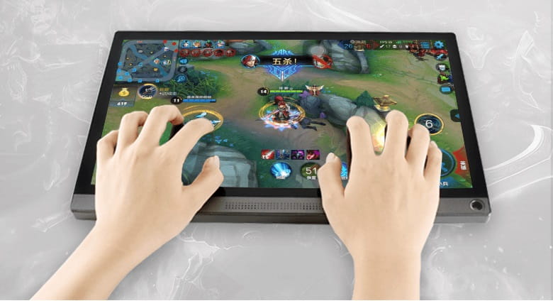 Monitor o przekątnej 15,6" z wyświetlaczem IPS o rozdzielczości 1920x1080 pixeli posiadający pojemnościowy panel dotykowy zabezpieczony hartowanym szkłem.