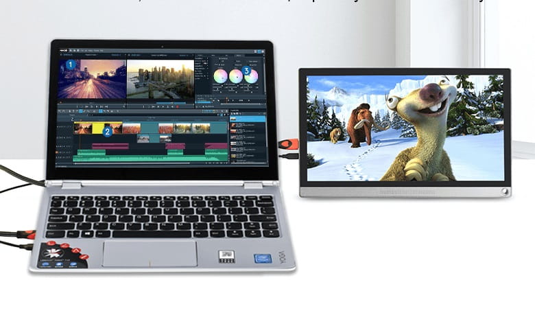 - Umożliwia prace z laptopami, działa jako dodatkowy monitor