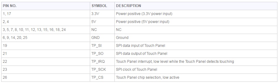 - obsługa panela dotykowego za pomoca portów GPIO Raspberry Pi
