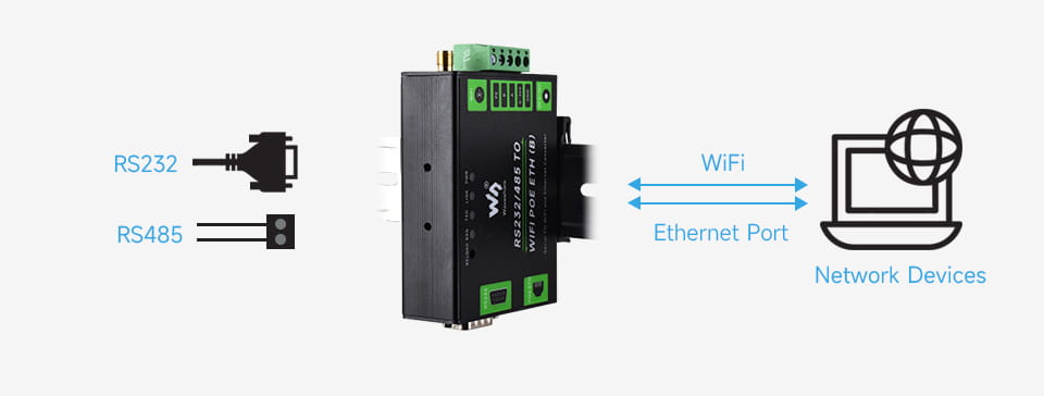 Supports RS232/RS485 to WiFi and Ethernet conversion