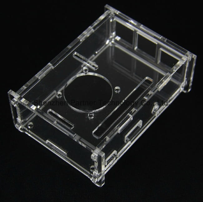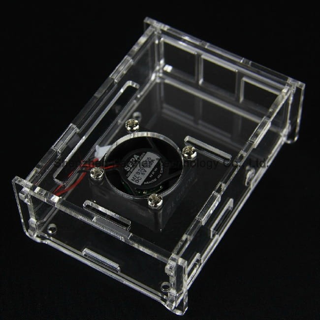 Przeźroczysta Obudowa dla Raspberry Pi B+ z otworem umożliwiającym montaż wentylatora.