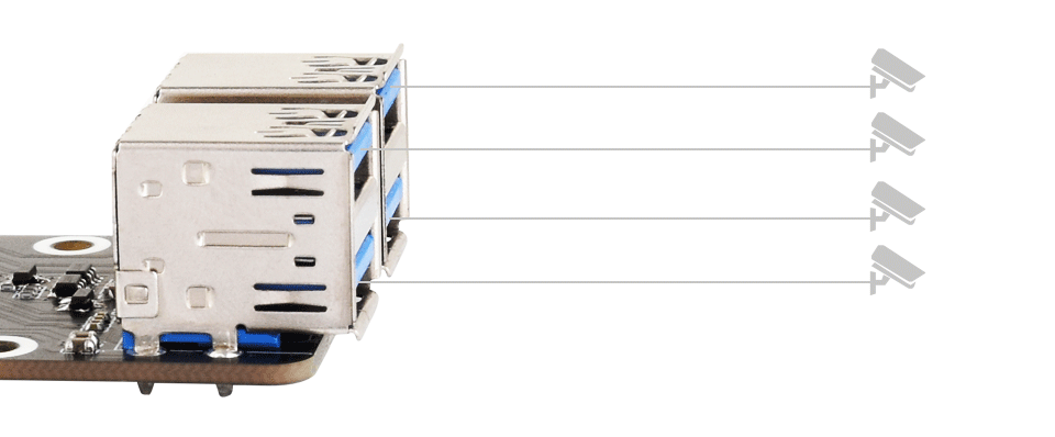 USB 3.2 Gen1 expansion for Raspberry Pi 5 – featuring 4 high-speed USB ports, a VL805 controller, per-channel power control, and side mounting with a transparent acrylic plate. Driver-free, Plug & Play, it's ideal for increasing the number of USB ports while maintaining high transmission bandwidth.