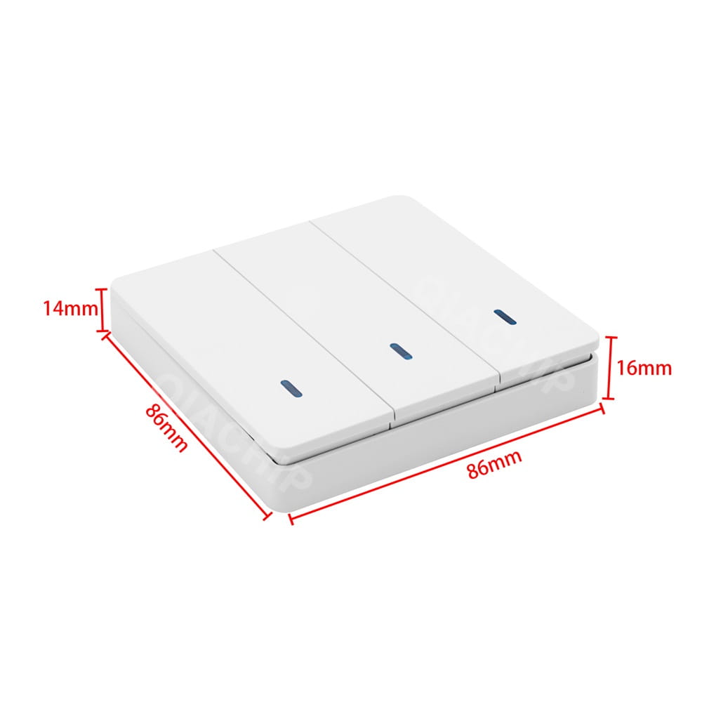 Dwukanałowy pilot w obudowie imitującej przełącznik ścienny, współpracuje z przełącznikami Sonoff posiadającymi wbudowany odbiornik RF oraz innymi przełącznikami, które możemy obsługiwać za pomocą pilotów radiowych 433MHz, bez problemów paruje się z odbiornikiem BroadLink oraz innymi obsługującymi piloty stało kodowe. Pilota bezproblemowo zamontujesz w dowolnym miejscu za pomocą dwustronnej taśmy klejącej dołączonej do zestawu lub za pomocą wkrętów, odpowiednie otwory znajdują się w obudowie pilota.