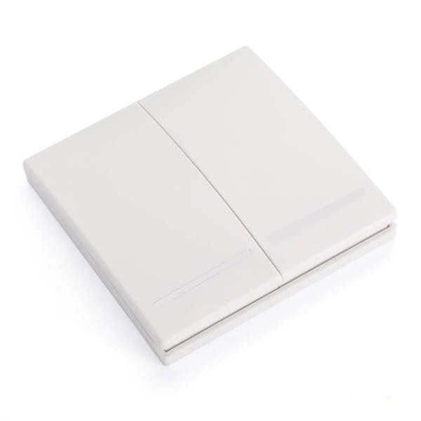 Dwukanałowy pilot w obudowie imitującej przełącznik ścienny, współpracuje z przełącznikami Sonoff posiadającymi wbudowany odbiornik RF oraz innymi przełącznikami, które możemy obsługiwać za pomocą pilotów radiowych 433MHz, bez problemów paruje się z odbiornikiem BroadLink oraz innymi obsługującymi piloty stało kodowe. Pilota bezproblemowo zamontujesz w dowolnym miejscu za pomocą dwustronnej taśmy klejącej dołączonej do zestawu lub za pomocą wkrętów, odpowiednie otwory znajdują się w obudowie pilota.