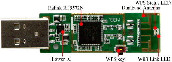 IEEE 802.11a/b/g/n WLAN module with on-board 2.4Ghz and 5Ghz Dual band antenna.