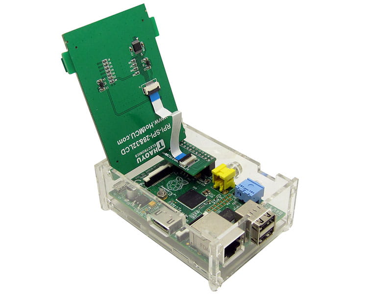It is a 2.8" display with 320x240 16-bit color pixels and a resistive touch overlay. The plate uses the high speed SPI interface on the Pi and can use the mini display as a console, X window port, displaying images or video etc. Best of all, it is use FPC cable connect with Raspberry Pi.