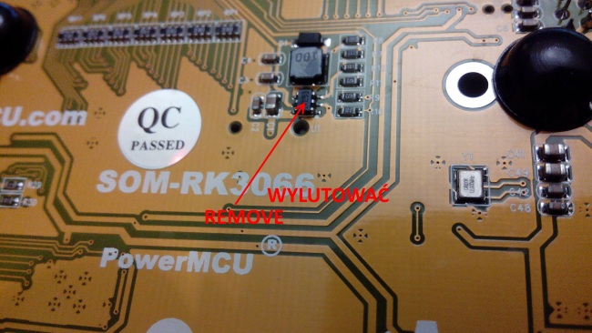 Aby podłączyć wyświetlacz HY070CTP-HD z MarsBoard RK3066 lub Marsboard PX2 musimy wylutować układ oznaczony U1 z płyty MarsBoard - nie wylutowanie tego układu doprowadzi do uszkodzenia wyświetlacza oraz płyty Marsboard !!!.