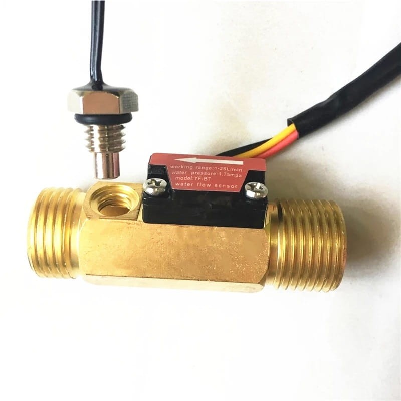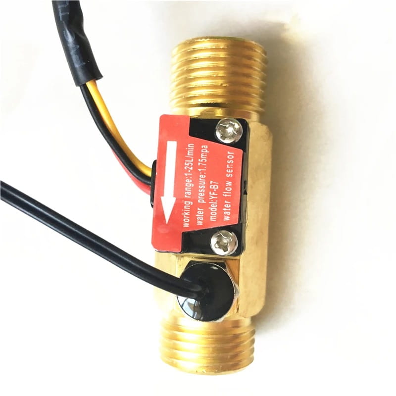 Czujnik przepływu wody składa się z miedzianego korpusu, wirnika wodnego i czujnika Halla. Gdy woda przepływa przez wirnik, wirnik jest wprawiany w ruch. Jego prędkość zmienia się wraz z różnym natężeniem przepływu. Czujnik Halla wysyła odpowiedni sygnał impulsowy. Ten jest odpowiedzialny za wykrywanie przepływu w miejscach o powolnym przepływie. Dodatkowo moduł wyposażono w termistor NTC 50K co umożliwia kontrole temperatury przepływającej cieczy.
