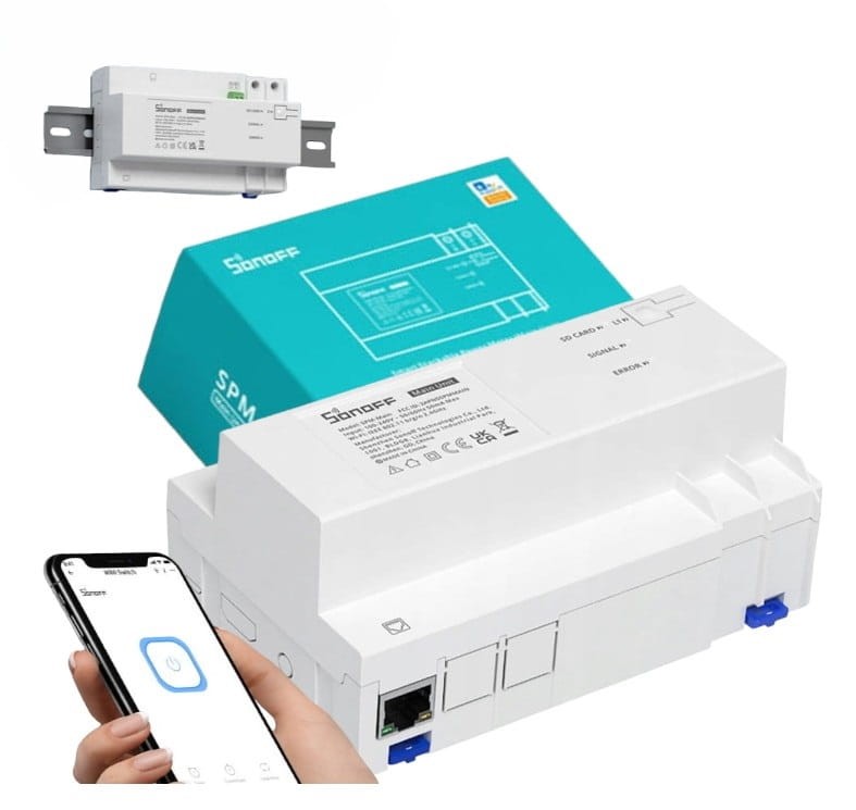 Inteligentny przełącznik Sonoff SPM-Main umożliwiający pomiar parametrów prądowych służący do budowy zaawansowanych systemów wielkoobwodowych. Sonoff SPM jako master sieci RS485 umożliwia podłączanie i zarządzanie sterownikami przekaźników z opcją liczników energii z możliwością układania w stos aż do 128 obwodów! Dzięki temu rozwiązaniu możliwa będzie pełna kontrola nad zużyciem prądu w takich obiektach jak przedsiębiorstwo, hotele, mieszkania itp. Sonoff SPM-Main zapewnia inteligentne zarządzanie z ochroną przed przeciążeniem, monitorowaniem metadanych i statystykami dotyczącymi energii elektrycznej. Inteligentny miernik zużycia mocy można montować na szynie DIN i jest zdolny do obsługi maksymalnie do 128 urządzeń (do 32 jednostek SPM-4Relay z 4 przekaźnikami każdy).