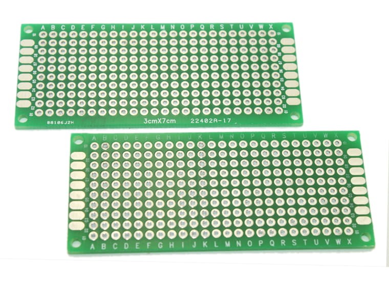 Płytka prototypowa dwustronna o wymiarach: 3cm x 7cm.