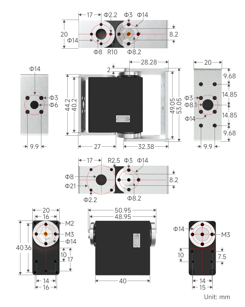 - Obudowa z aluminium i silnik bezszczotkowy zapewniają wysoką niezawodność i długą żywotność, odpowiednie dla zastosowań przemysłowych i robotycznych.