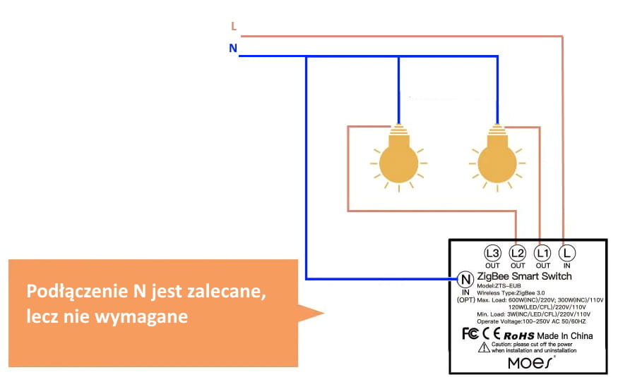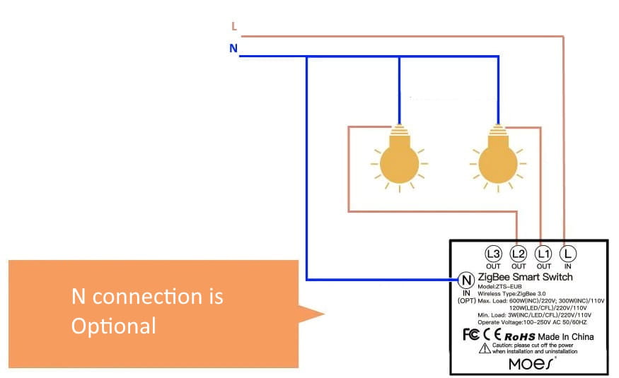 Ta cecha odróżnia te przełączniki od wielu inteligentnych włączników dostępnych na rynku. Konieczność doprowadzenia i zmiany instalacji zniechęcała lub uniemożliwiała stworzenia automatyki w wielu starszych budynkach. Bez linii N instalacja jest niezwykle prosta i wymaga podłącznie wyłącznie lini L-in oraz L-out do urządzenia zasilanego.