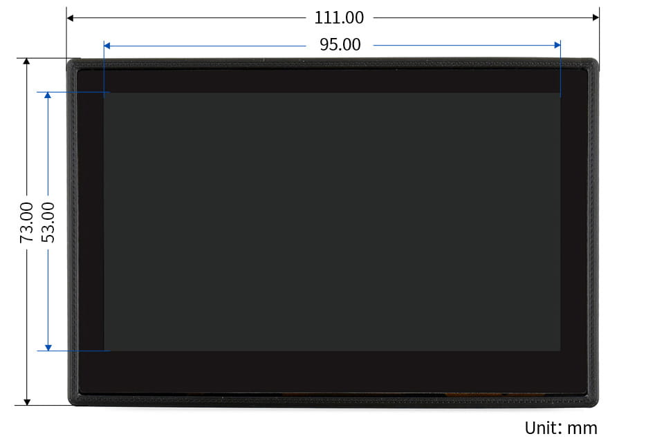 Wyświetlacz 4.3" IPS 800x480 DSI z obudową i panelem dotykowym pojemnościowym
