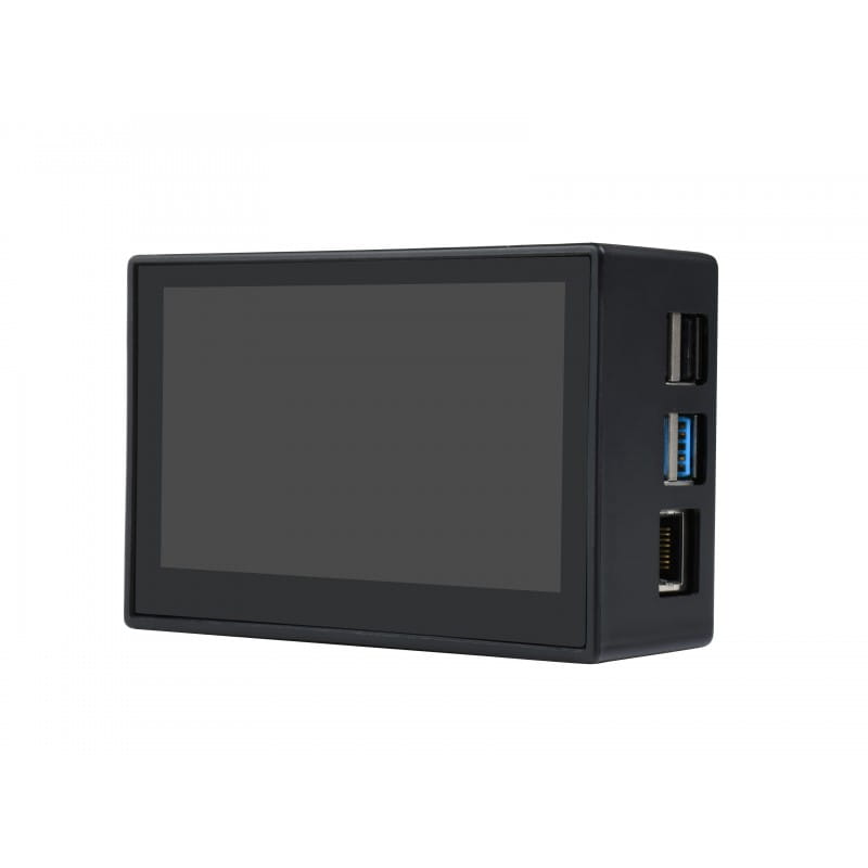 Wyświetlacz 4.3" IPS 800x480 MPI DSI i panelem dotykowym pojemnościowym, w zestawie znajduje się również obudowa dla wyświetlacza oraz Raspberry Pi.